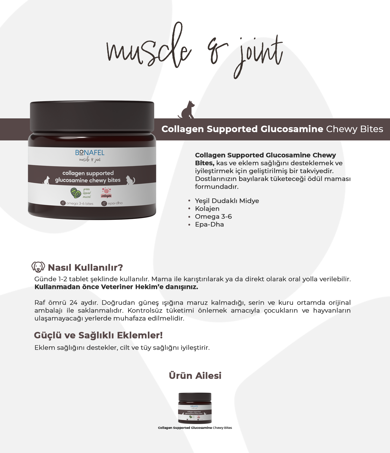 Bonafel Kedi ve Köpekler için Glukozamin Katkılı Eklem Sağlığı Çiğneme Tableti 100 gr – 50 tablet